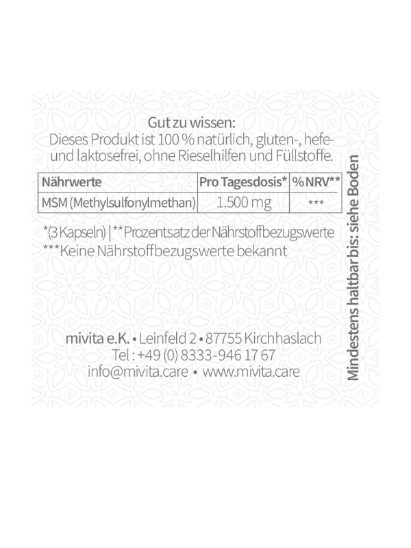| MSM (Methylsulfonylmethan) | 1.500 mg | *** |